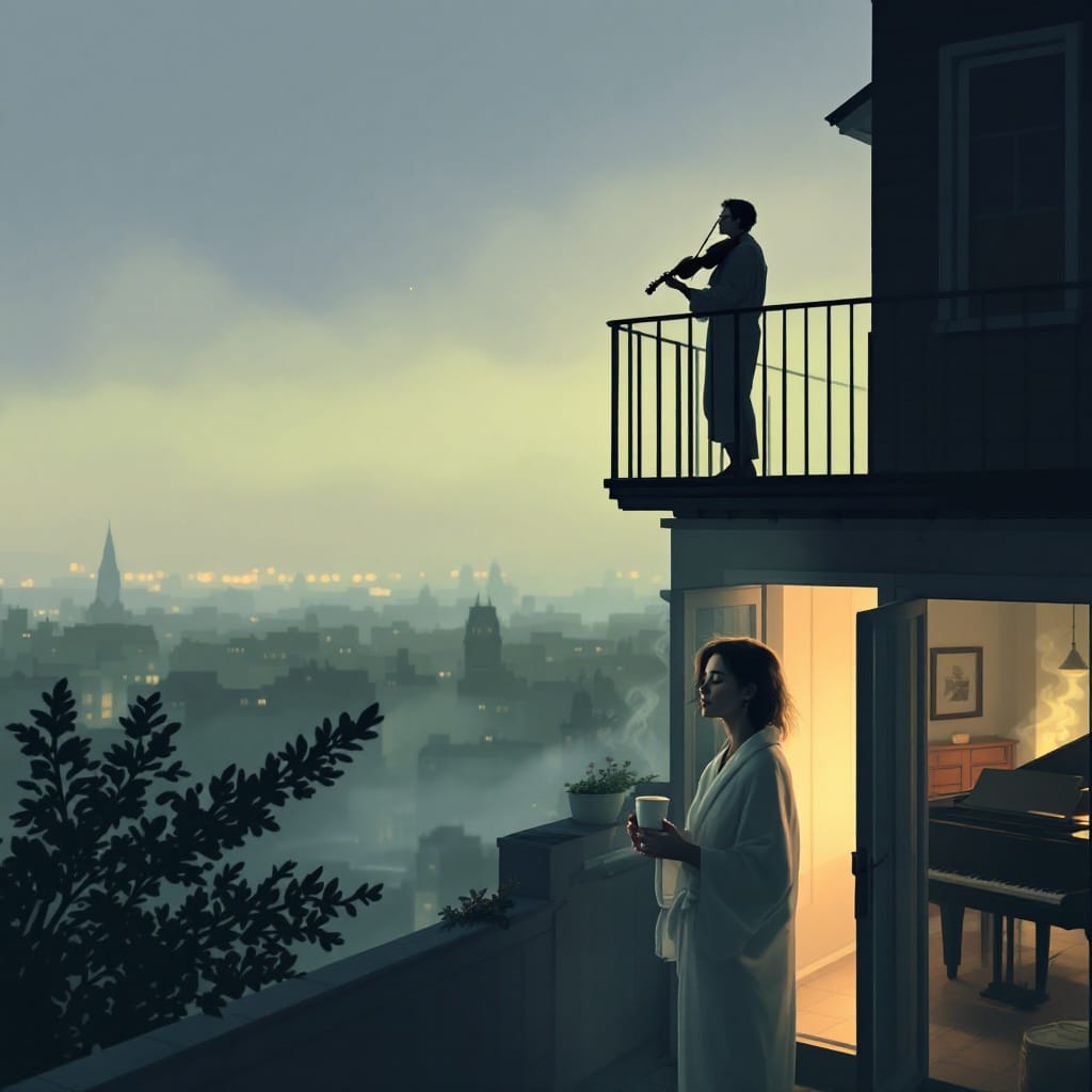 She’s there, just below, wrapped in morning light, coffee in hand, eyes somewhere far away. She doesn’t notice you yet. She doesn’t have to. She’s inside the moment too. Something about her stillness makes the entire world feel composed. As if her quiet presence is the final note that makes the music whole.