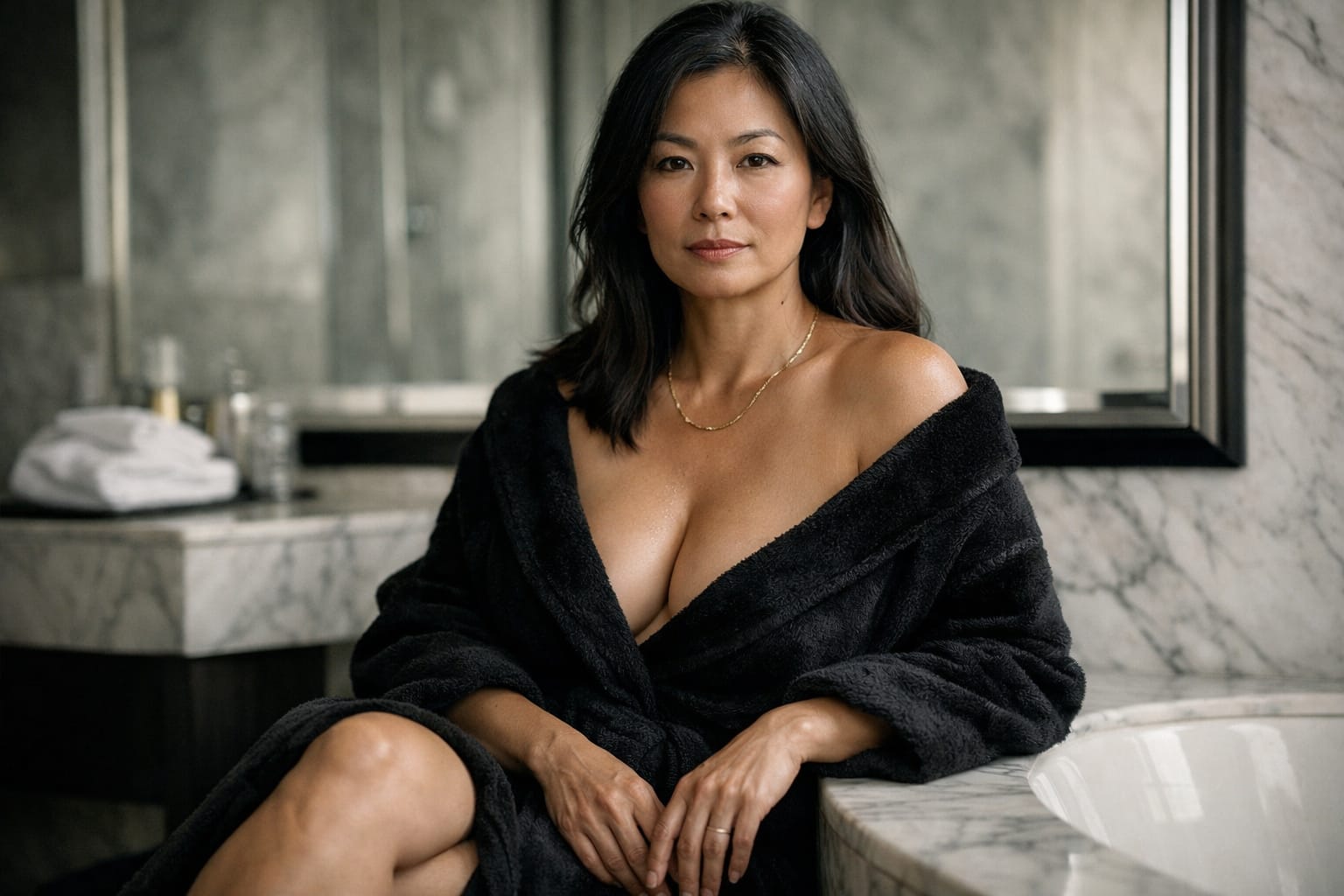 Soon she would leave this marble mausoleum, wrap herself in fabric chosen for its discretion, and step back into the corridor of borrowed lives and borrowed confidence. She would speak when expected, laugh on cue, disappear politely when required. But she would carry this with her: the unguarded second when nothing was staged, when nothing asked her to perform. The cost of admission had been simple and brutal—you had to see yourself whole.