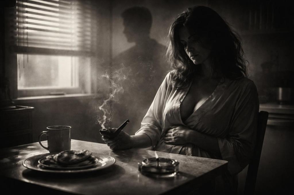 Morning doesn’t break so much as it leaks in—thin, hesitant light slipping through the blinds like it’s not sure it belongs here anymore.