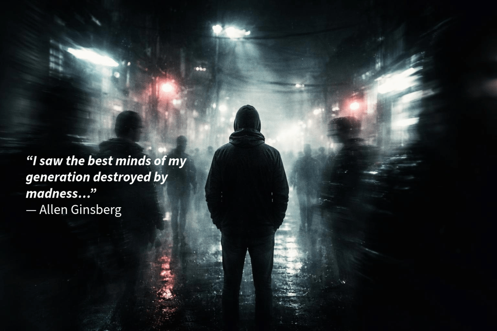 That’s the part Ginsberg captures. Not just the destruction—but the act of witnessing it. The inability to turn away once you’ve seen it for what it is.