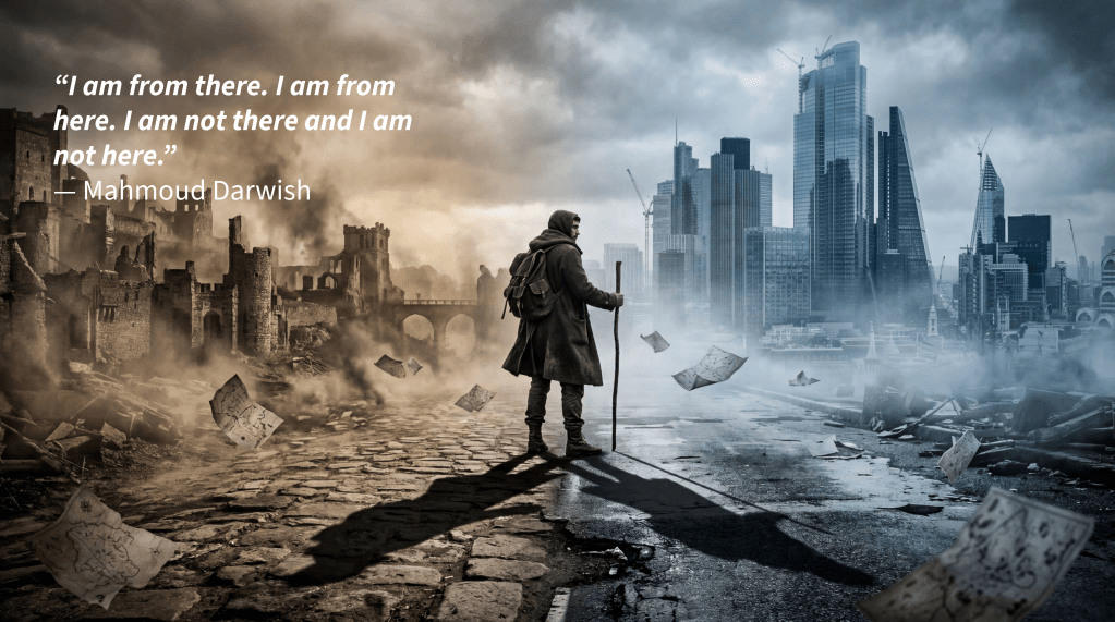Darwish speaks from exile, but exile takes many forms. Sometimes it is political. Sometimes familial. Sometimes emotional. Sometimes you can sit in your own house and feel like a visitor.