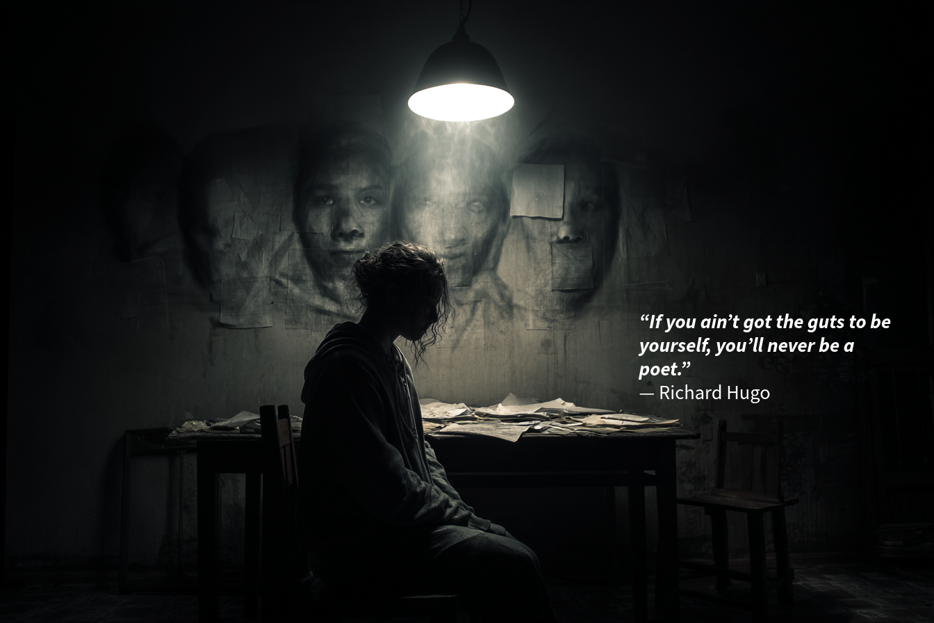 We learn early how to perform. How to adjust. How to soften the edges so we’re easier to accept. And somewhere along the way, that performance starts to look like identity. Hugo’s line cuts straight through that illusion. It’s not asking if you can write—it’s asking if you’re willing to risk being seen without the mask.