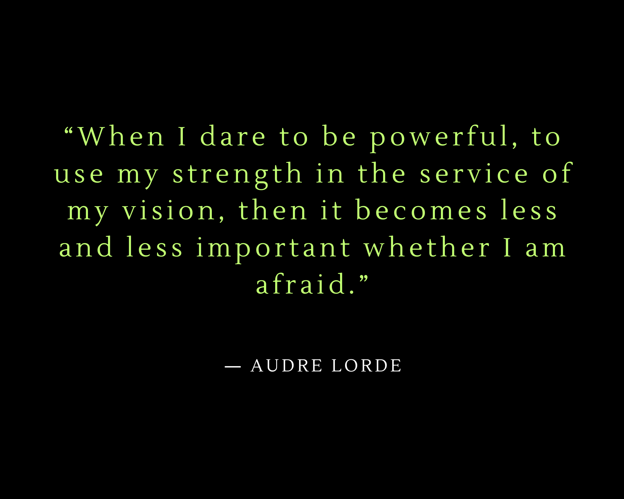 But Audre Lorde doesn’t tell us to wait for fear to leave.